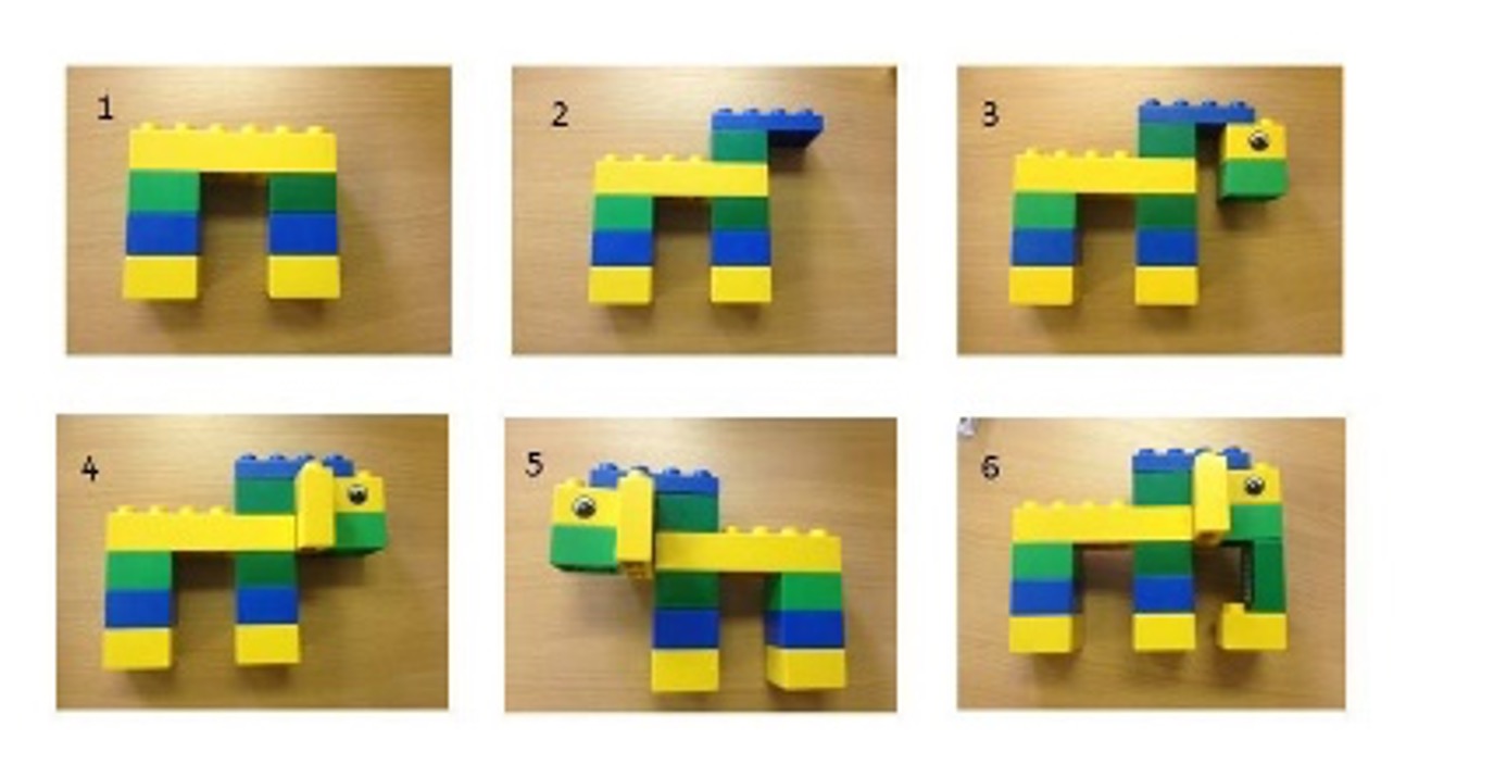 De kleuters bouwen een constructie met lego/duplo/clicks aan de hand van een stappenplan.